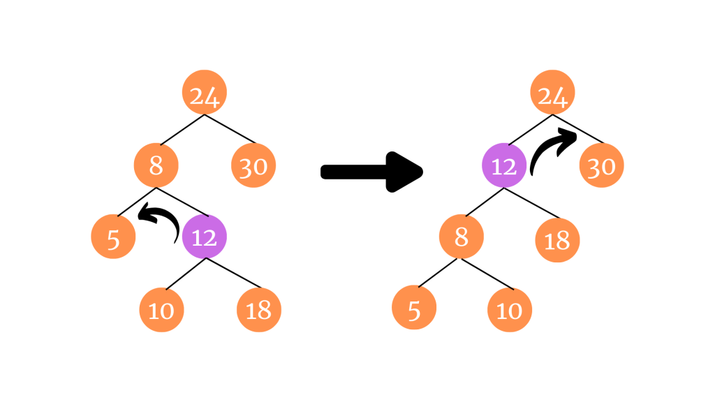 Aşağıdaki ağaçta “12″ için arama işlemi yapılmış ve bulunduğunda döndürme işlemleriyle köke taşınmıştır.