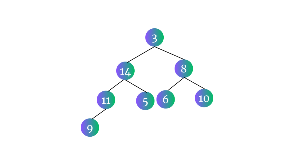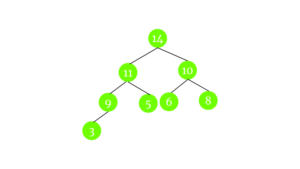 [3, 14, 8, 11, 5, 6, 10, 9] sayı dizisinden maksimum heap tree oluşturalım.
