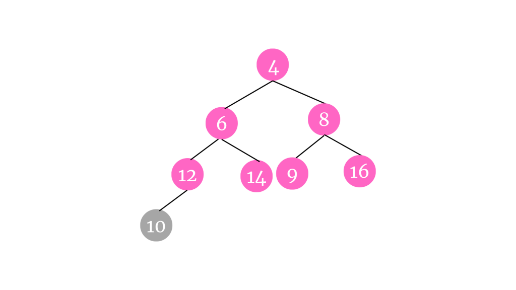 10 parent’ı 12’den daha küçük olduğu için swap işlemi uygulanır.