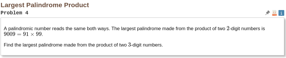 Bu problemde 3 basamaklı iki sayının çarpımından elde edilen en büyük polindrom sayıyı bulmamız isteniyor.